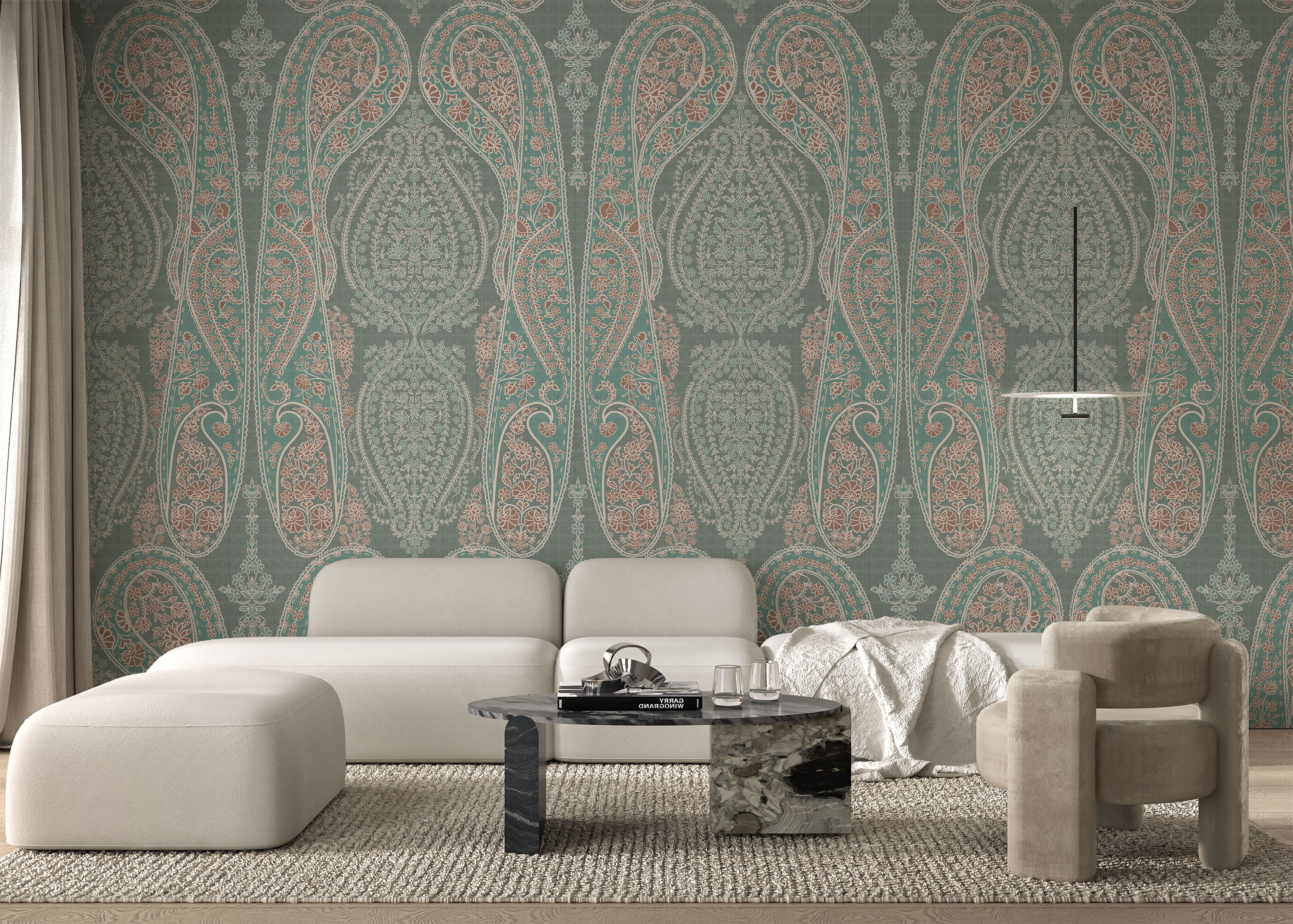A timeless motif comes to life with hand-drawn precision, blending tradition and panache in every curve. This wallpaper captures the intricate elegance of paisley, a design celebrated for centuries, reimagined with modern finesse, creating an atmosphere of timeless beauty for your interiors.