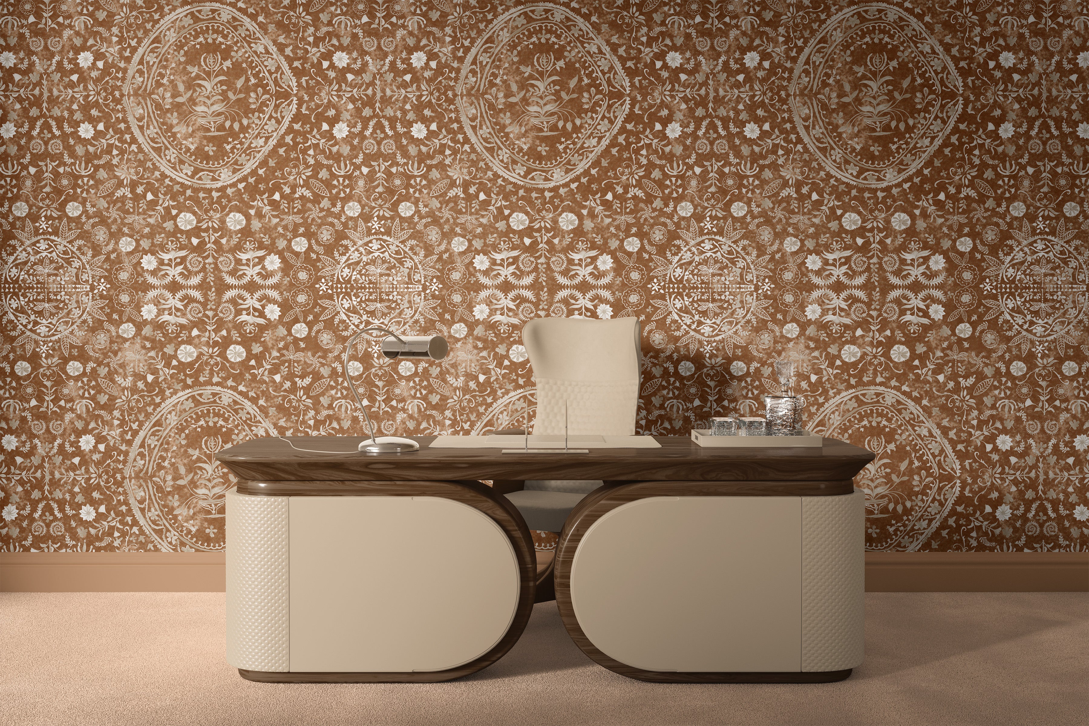 Rhythm of the Roots is shaped by the quiet poetry of tribal florals. Each motif is drawn with raw, organic strokes that mirror the way flowers are celebrated in indigenous art: simple, symbolic, and deeply connected to the earth. The pattern carries a gentle cadence, as if every bloom follows its own rhythm across the wall. A design that brings the warmth and authenticity of handcrafted floral art into modern spaces.